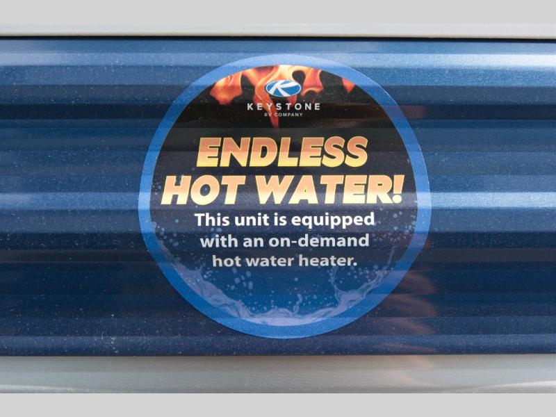 - Convenient Features: With electric stabilizer jacks, power tongue jacks, a friction hinge entry door, and an XL entry assist handle, setup is a breeze, and accessibility is easier than ever.