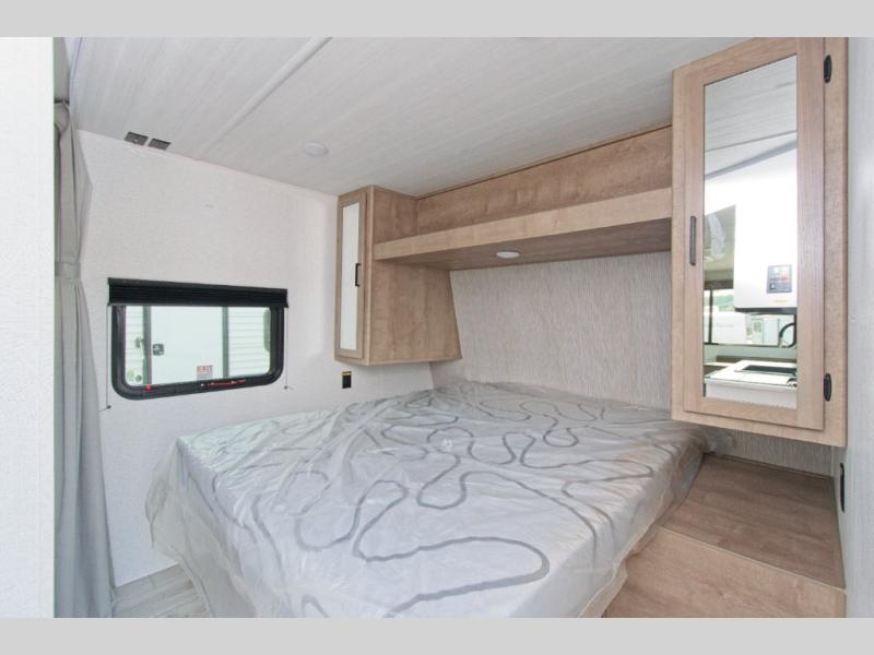 The Keystone Springdale Classic 200RLC is the ideal travel trailer for families of 4-6, offering a semi-private queen bedroom with dual closets and nightstands to keep your belongings organized. Enjoy meals together at the booth dinette, and when you're ready to relax, unwind on the comfortable sofa. At night, the sofa can transform to accommodate additional guests, ensuring everyone has a spot to rest.