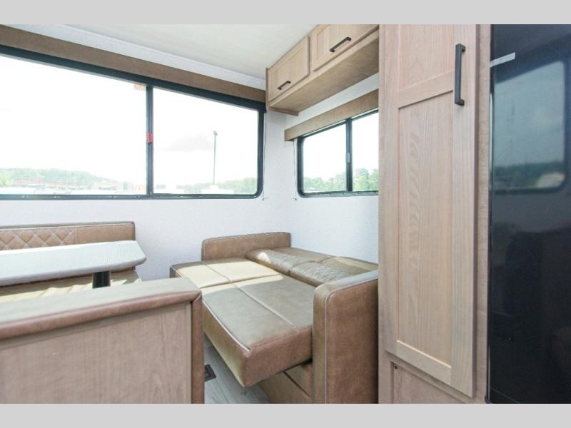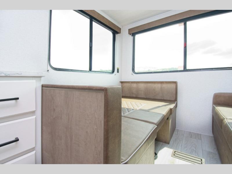 - Comfort and Privacy: Inside, you’ll enjoy LED lighting, bedside outlets, blackout night shades, and an optional SolarFlex 200 system for off-grid capabilities, all designed to make your experience comfortable and convenient.