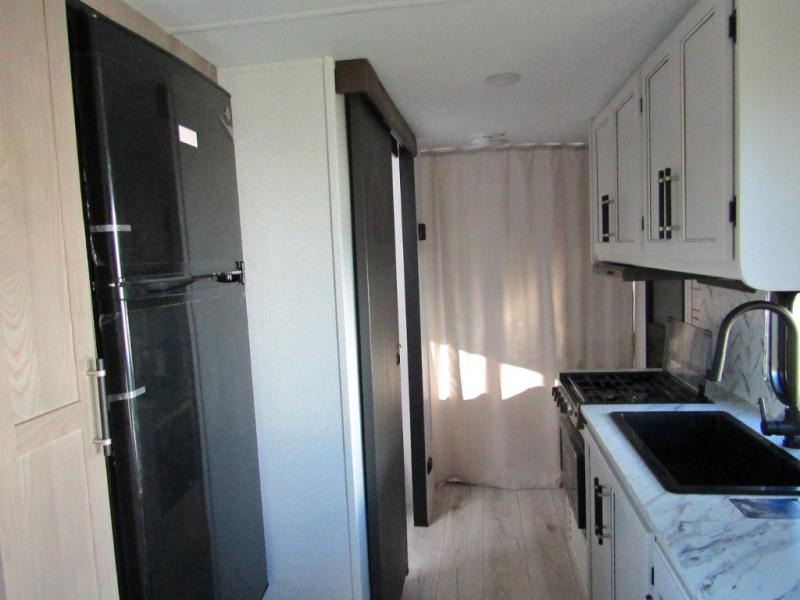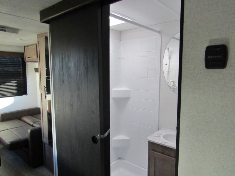 Inside, the 200RLC offers a queen-sized bed and a convertible dinette for flexible sleeping arrangements. The full kitchen is equipped with a microwave, stove, and a 12V refrigerator (10 cf) to keep your meals fresh on the go. Enjoy a full bathroom with shower, toilet, and sink for ultimate convenience, while the sofa and entertainment area provide a cozy spot for movie nights or relaxing after a day of adventure. With Solar Flex Protect, you can enjoy off-grid power when exploring remote locations, and exterior pass-through storage keeps gear organized and accessible.