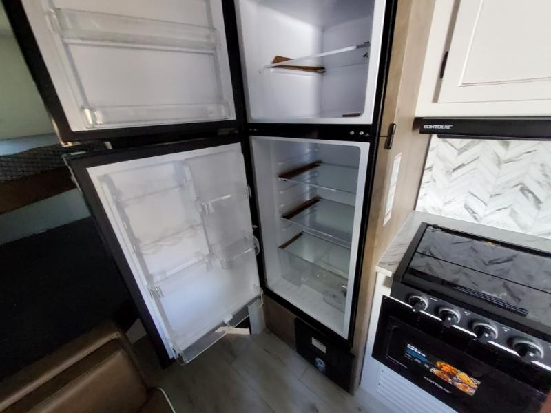 Bring the whole gang and explore with this bunkhouse travel trailer in tow! There is sleeping for up to 10 with double-size bunk beds, a queen bed up front, as well as a sofa and booth dinette that can accommodate more when reconfigured at night. You will easily be able to create meals to enjoy while camping inside with the three-burner range and a 10 cu. ft. 12V refrigerator. Overhead storage is available above the stove and sink and along the opposite side. There is also a front pass-through for housing all of your outdoor gear, as well as additional outside storage beneath the bunk beds. The 12' power awning will also provide more living space and outdoor protection from the sun and/or rain.