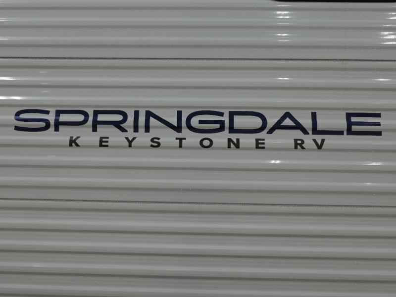 The Springdale Classic travel trailers by Keystone will provide you and your family many great outdoor experiences and it will also be kind to your pocketbook. Each one is constructed with an aluminum exterior, a walkable roof, and an I-beam frame with stamped steel cross-members and outriggers for added strength. There are also electric stabilizer jacks and power tongue jacks outside, along with a friction hinge entry door and an XL entry assist handle for added convenience. Each travel trailer includes a two burner flush mount gas range with a glass cover, LED lighting, bedside outlets, and blackout night shades inside that will provide you with more privacy at night.