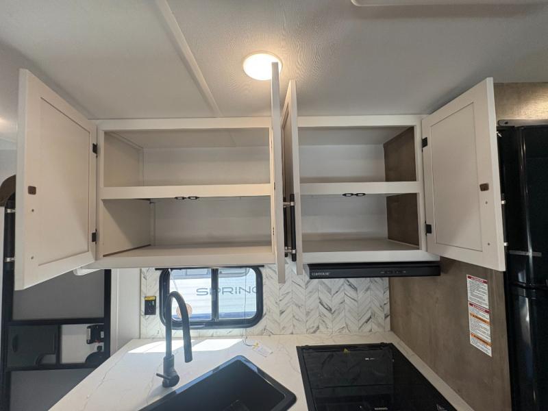 The Springdale Classic travel trailers by Keystone will provide you and your family many great outdoor experiences and it will also be kind to your pocketbook. Each one is constructed with an aluminum exterior, a walkable roof, and an I-beam frame with stamped steel cross-members and outriggers for added strength. There are also electric stabilizer jacks and power tongue jacks outside, along with a friction hinge entry door and an XL entry assist handle for added convenience. Each travel trailer includes a two burner flush mount gas range with a glass cover, LED lighting, bedside outlets, and blackout night shades inside that will provide you with more privacy at night.
