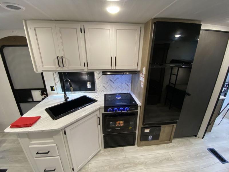 The Springdale Classic travel trailers by Keystone will provide you and your family many great outdoor experiences and it will also be kind to your pocketbook. Each one is constructed with an aluminum exterior, a walkable roof, and an I-beam frame with stamped steel cross-members and outriggers for added strength. There are also electric stabilizer jacks and power tongue jacks outside, along with a friction hinge entry door and an XL entry assist handle for added convenience. Each travel trailer includes a two burner flush mount gas range with a glass cover, LED lighting, bedside outlets, and blackout night shades inside that will provide you with more privacy at night.
