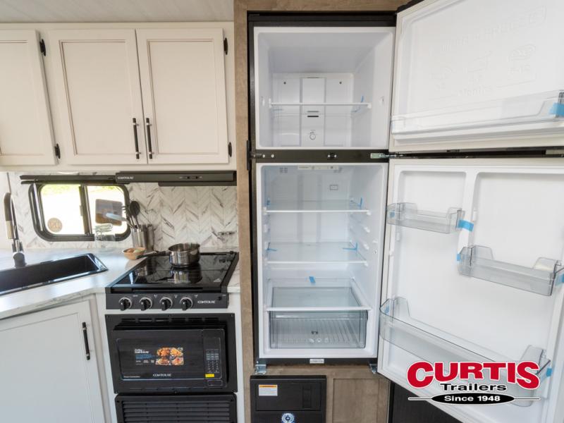 The Springdale Classic travel trailers by Keystone will provide you and your family many great outdoor experiences and it will also be kind to your pocketbook. Each one is constructed with an aluminum exterior, a walkable roof, and an I-beam frame with stamped steel cross-members and outriggers for added strength. There are also electric stabilizer jacks and power tongue jacks outside, along with a friction hinge entry door and an XL entry assist handle for added convenience. Each travel trailer includes a two burner flush mount gas range with a glass cover, LED lighting, bedside outlets, and blackout night shades inside that will provide you with more privacy at night.