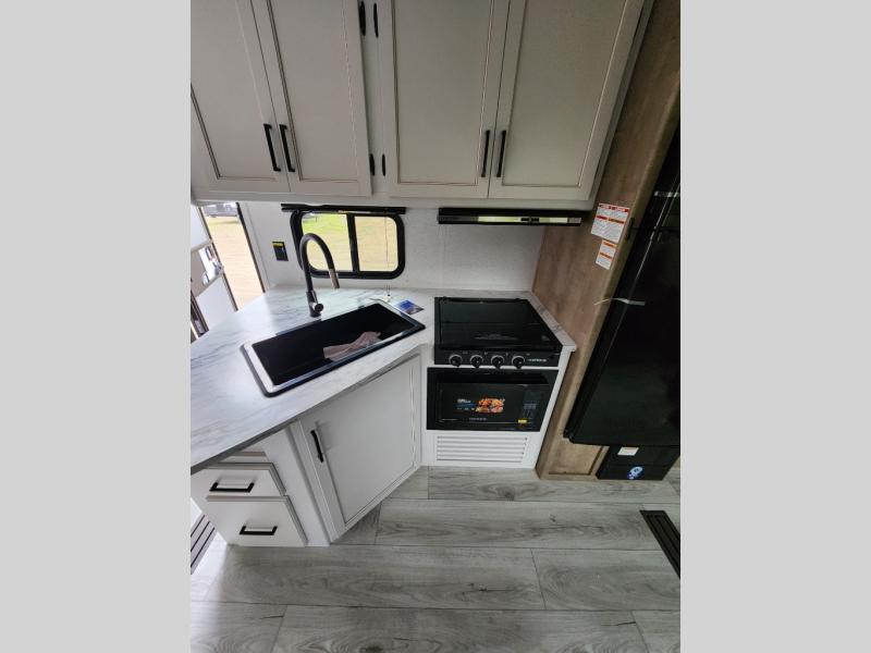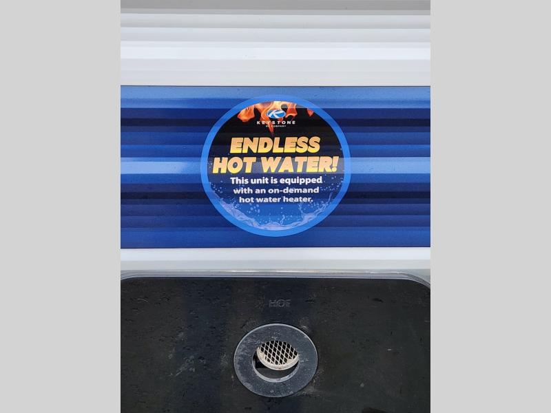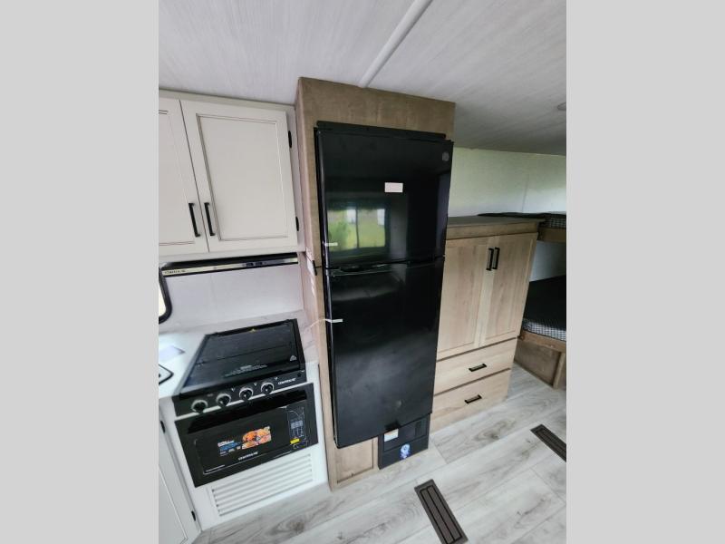 What could be better than camping with double-size bunks for guests? How about a front private bedroom for you, a full bath to clean up in, and a super slide out for maximum space! The chef of your group can prepare breakfast on the three burner gas range in the morning, or use the microwave if you're on the go. There is a booth dinette to dine at, or you can take your plate outdoors to sit under the power awning.