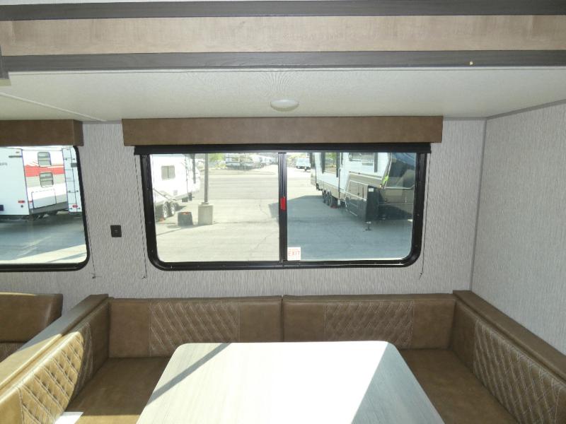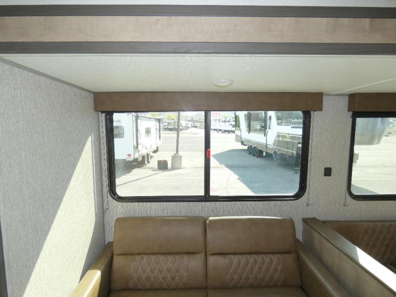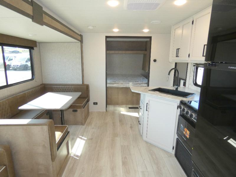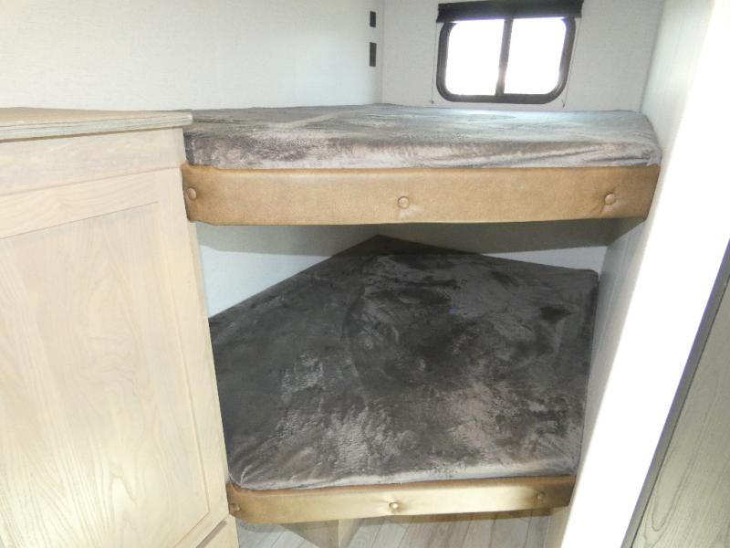 What could be better than camping with double-size bunks for guests? How about a front private bedroom for you, a full bath to clean up in, and a super slide out for maximum space! The chef of your group can prepare breakfast on the three burner gas range in the morning, or use the microwave if you're on the go. There is a booth dinette to dine at, or you can take your plate outdoors to sit under the power awning.