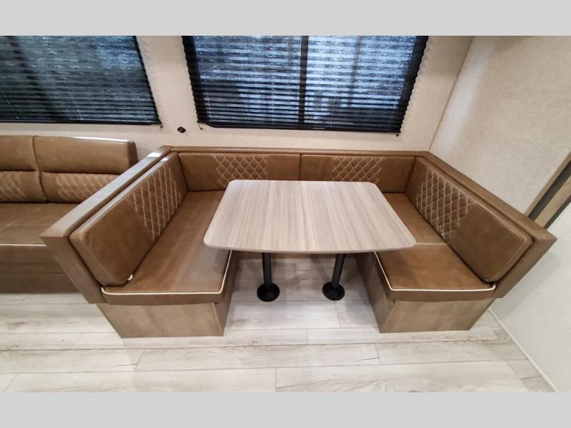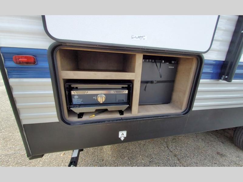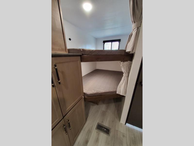 What could be better than camping with double-size bunks for guests? How about a front private bedroom for you, a full bath to clean up in, and a super slide out for maximum space! The chef of your group can prepare breakfast on the three burner gas range in the morning, or use the microwave if you're on the go. There is a booth dinette to dine at, or you can take your plate outdoors to sit under the power awning.