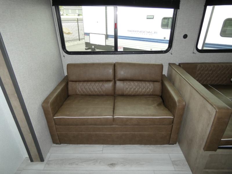 The Springdale Classic travel trailers by Keystone will provide you and your family many great outdoor experiences and it will also be kind to your pocketbook. Each one is constructed with an aluminum exterior, a walkable roof, and an I-beam frame with stamped steel cross-members and outriggers for added strength. There are also electric stabilizer jacks and power tongue jacks outside, along with a friction hinge entry door and an XL entry assist handle for added convenience. Each travel trailer includes a two burner flush mount gas range with a glass cover, LED lighting, bedside outlets, and blackout night shades inside that will provide you with more privacy at night.