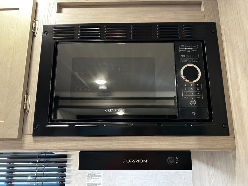 Meal prep is a breeze with the residential-style kitchen, which includes a large 2-door refrigerator, microwave, three-burner cooktop with oven, high-rise faucet, and ample pantry and cabinet storage.