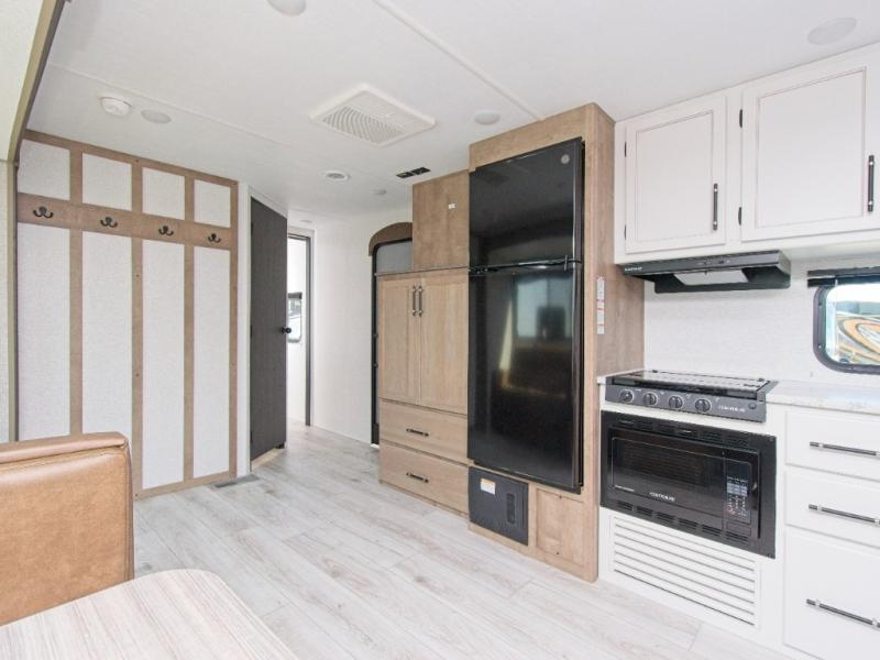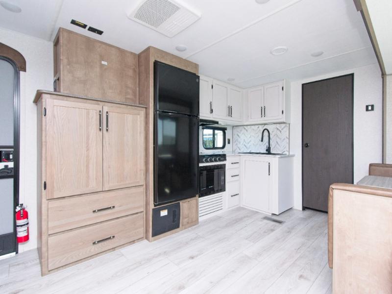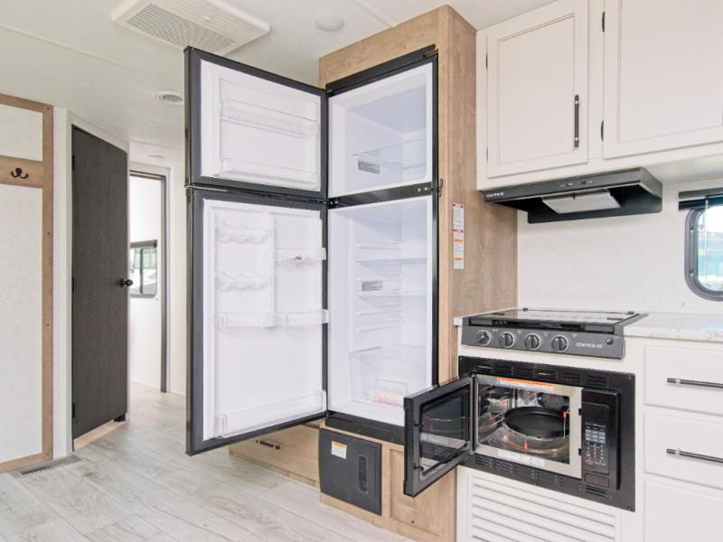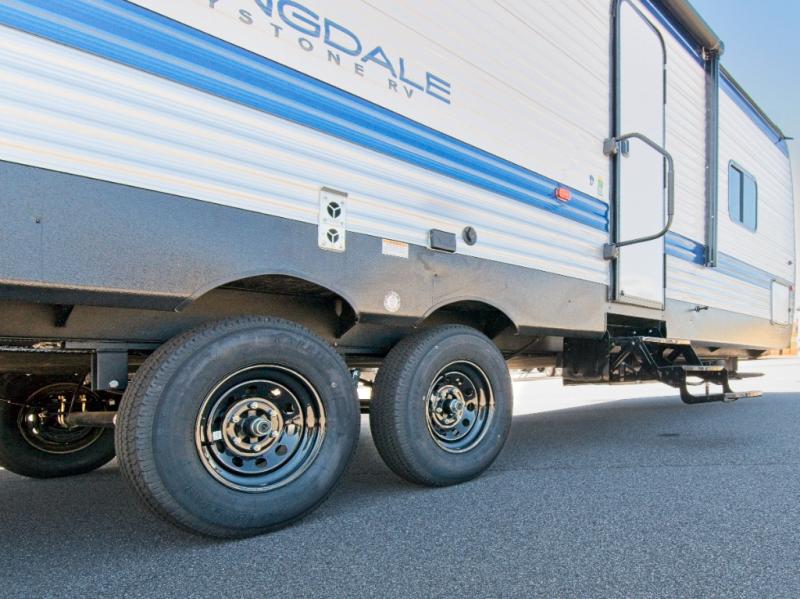 The Springdale Classic is built to last with a strong aluminum exterior, walkable roof, and I-beam frame with stamped steel cross-members for added durability. Outside, enjoy electric stabilizer jacks, a power tongue jack, and a friction hinge entry door with an XL entry assist handle for added convenience and ease of use. Inside, the two-burner flush mount gas range, LED lighting, and blackout night shades provide practical and stylish features for your convenience.