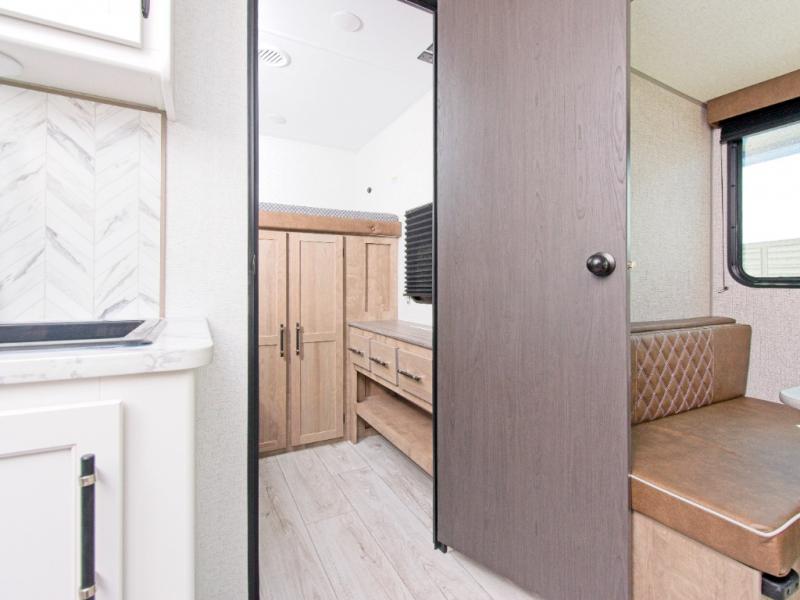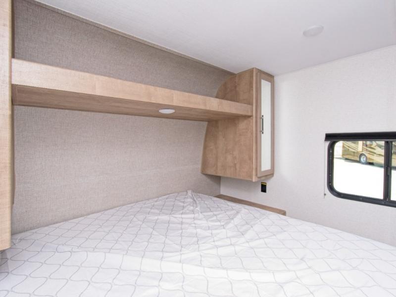 Experience the perfect family getaway with the Keystone Springdale Classic 291BRC travel trailer, designed to maximize comfort and convenience. The rear private bunkhouse features triple bunks, providing ample sleeping space for the kids, along with two closets to keep their belongings organized. The front private bedroom offers a comfortable queen bed, plus dual closets and dual nightstands, creating a homely retreat after a day of adventure.