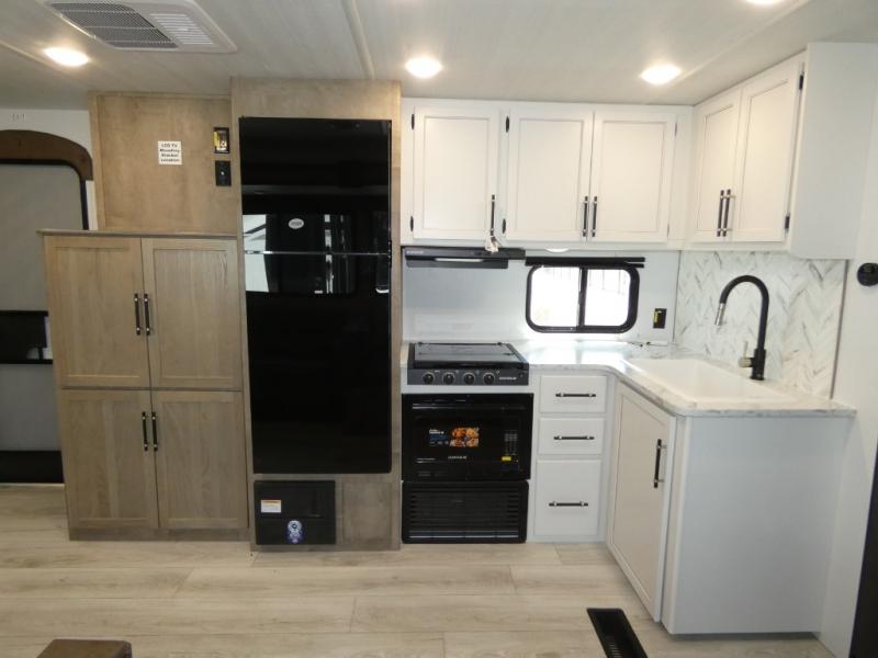 The Springdale Classic travel trailers by Keystone will provide you and your family many great outdoor experiences and it will also be kind to your pocketbook. Each one is constructed with an aluminum exterior, a walkable roof, and an I-beam frame with stamped steel cross-members and outriggers for added strength. There are also electric stabilizer jacks and power tongue jacks outside, along with a friction hinge entry door and an XL entry assist handle for added convenience. Each travel trailer includes a two burner flush mount gas range with a glass cover, LED lighting, bedside outlets, and blackout night shades inside that will provide you with more privacy at night.