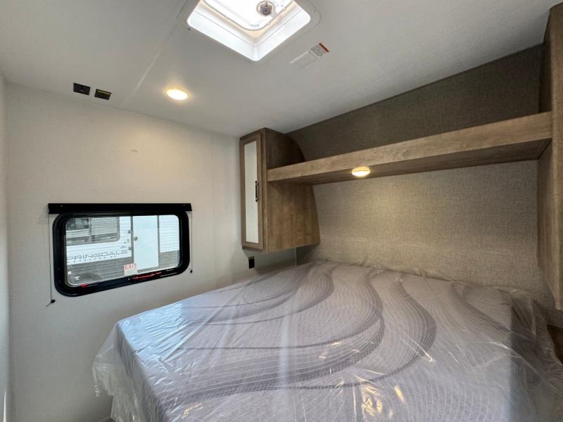 The Springdale Classic travel trailers by Keystone will provide you and your family many great outdoor experiences and it will also be kind to your pocketbook. Each one is constructed with an aluminum exterior, a walkable roof, and an I-beam frame with stamped steel cross-members and outriggers for added strength. There are also electric stabilizer jacks and power tongue jacks outside, along with a friction hinge entry door and an XL entry assist handle for added convenience. Each travel trailer includes a two burner flush mount gas range with a glass cover, LED lighting, bedside outlets, and blackout night shades inside that will provide you with more privacy at night.