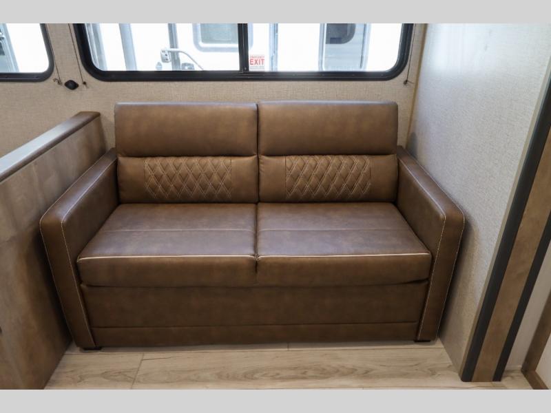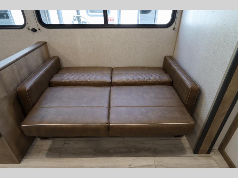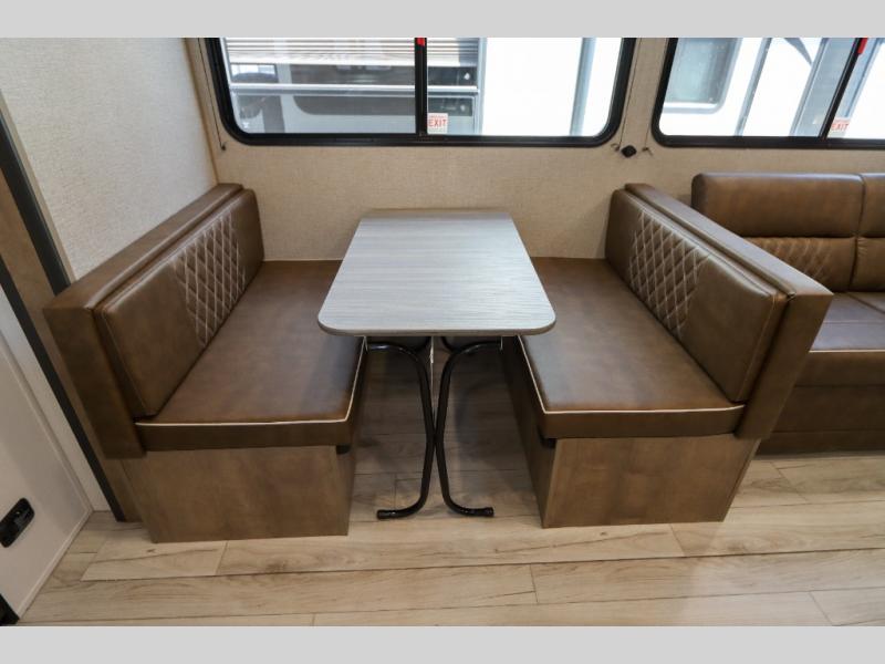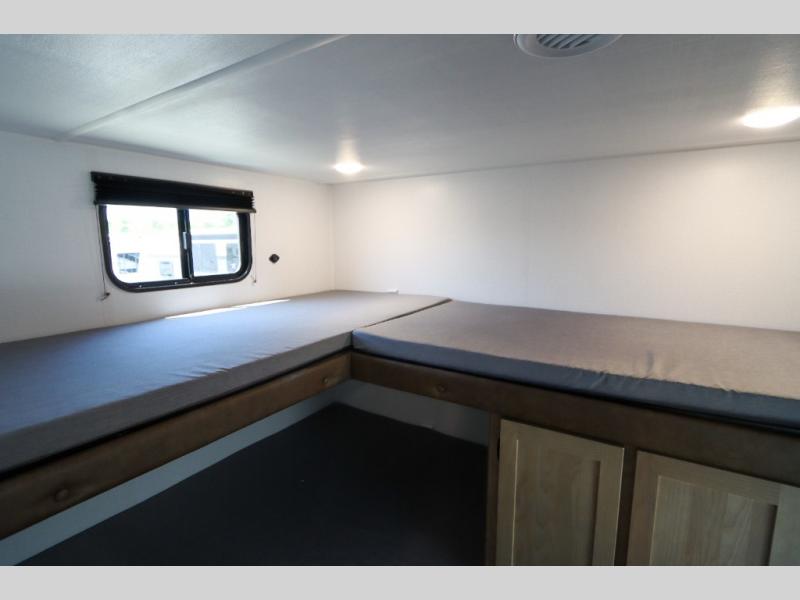 Camping with friends and family is easier than ever in this spacious trailer with a rear private bunkhouse! You'll find triple bunks in this room, along with two closets to keep everything tidy. The front private bedroom will feel just like home with its queen bed, plus dual closets and dual nightstands. Your crew can all gather in the main living area to relax on the sofa or play a game at the booth dinette, and there is even TV prep in this room if you enjoy movie nights. Head outdoors to relax under the 16' power awning.