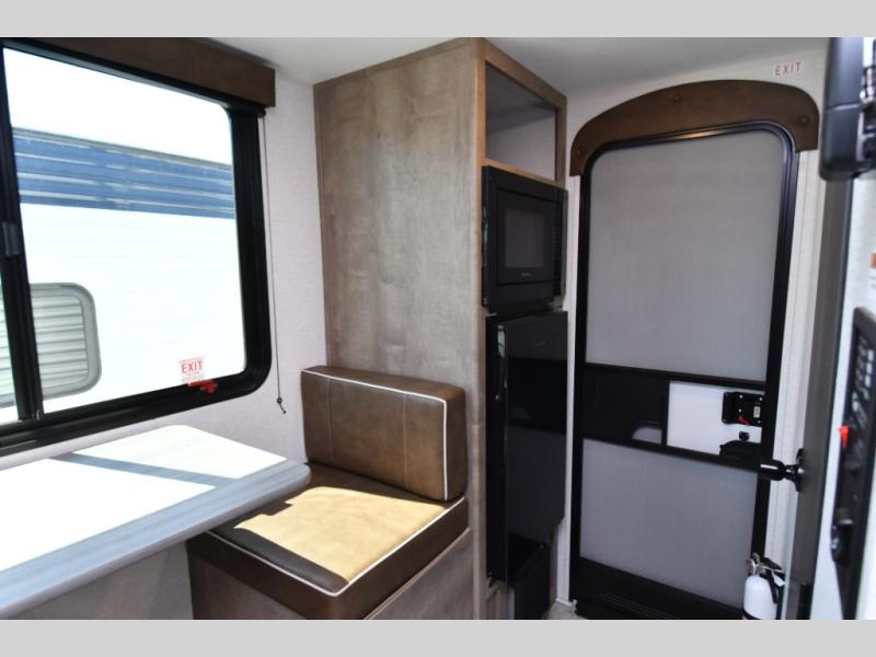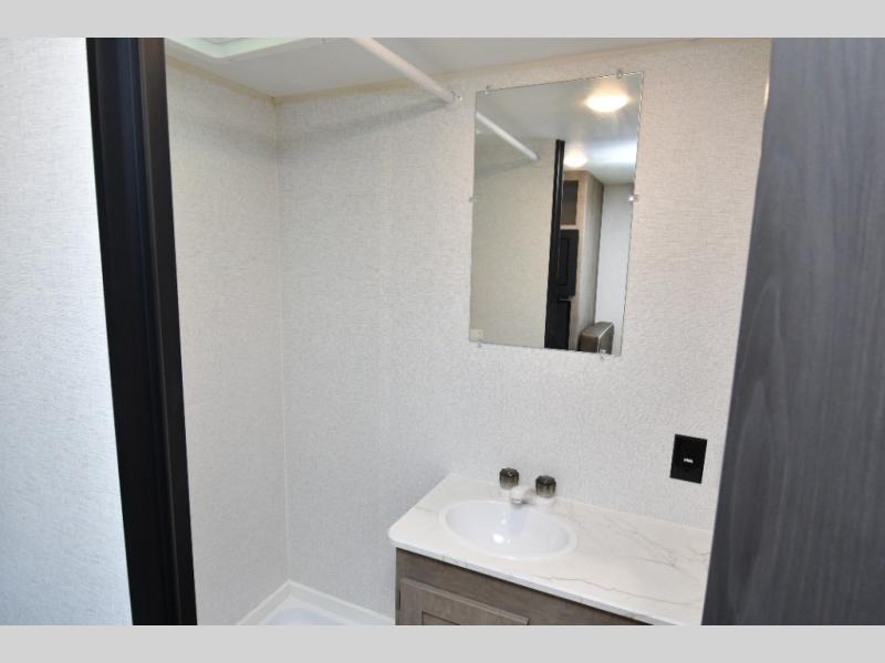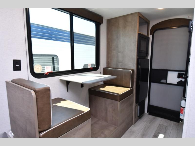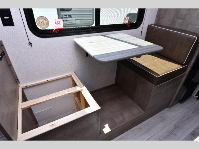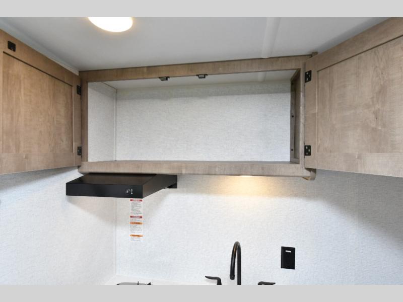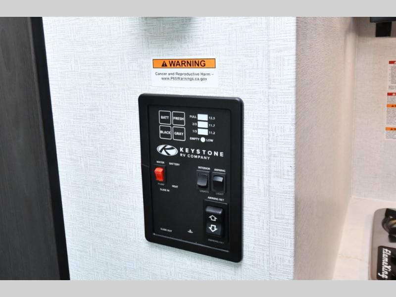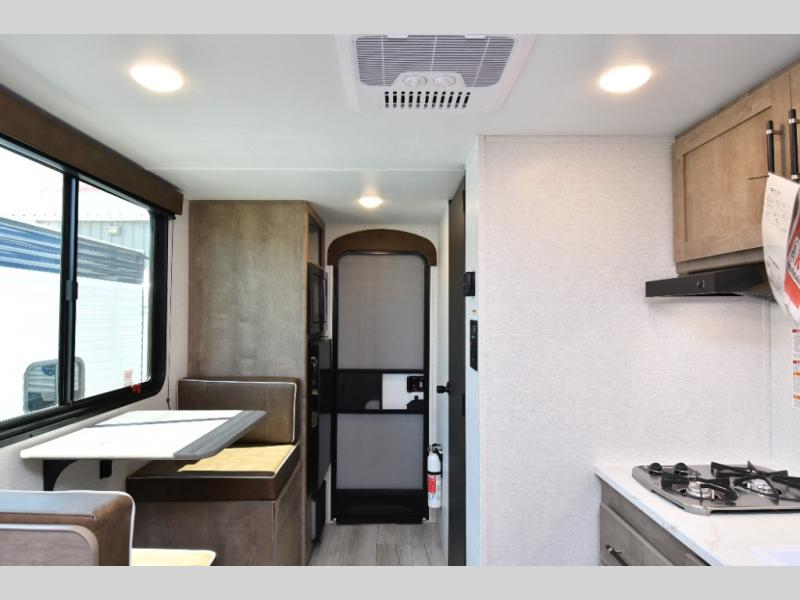 Inside, the front queen bed with overhead storage and bedside convenience provides a comfortable place to unwind after a day of adventure. The kitchen is equipped with a two-burner cooktop and 12V refrigerator, making it easy to prepare meals on the go, while the full bathroom keeps your camping experience convenient and fully self-contained. LED lighting brightens the space, and smart storage throughout ensures everything has its place. Outside, the 10' power awning creates a shaded outdoor living space, while pass-through storage makes loading gear quick and easy. With added features like roof A/C for comfort, stabilizer jacks for quick setup, and a spare tire kit for peace of mind, this Springdale is ready for the road from day one.
