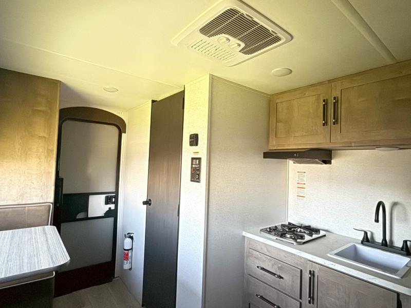 With any Springdale Classic Mini travel trailer by Keystone, you will enjoy lightweight towing thanks to their single axle! You'll find the XL entry assist handle will make entering and exiting your unit easier than ever, and the power awning will provide protection from the sun as you relax in your camp chairs outside. Each model includes blackout night shades, solid wood cabinet doors and drawers, a shower skylight for more standing room, plus many more interior comforts. There is also a 5,000 BTU A/C and 20K BTU furnace to keep you comfortable, plus a Girard tankless water heater for endless hot showers!