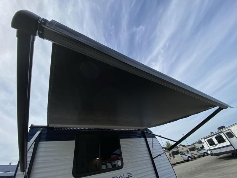 With any Springdale Classic Mini travel trailer by Keystone, you will enjoy lightweight towing thanks to their single-axle! You'll find the XL entry assist handle will make entering and exiting your unit easier than ever, and the power awning will provide protection from the sun as you relax in your camp chairs outside. Each model includes blackout night shades, solid wood cabinet doors and drawers, a shower skylight for more standing room, plus many more interior comforts. There is also a 5,000 BTU sidewall A/C and 20K BTU furnace to keep you comfortable, plus a Girard tankless water heater for endless hot showers!