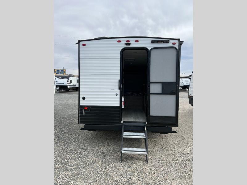 Toward the front, the sleeping area offers a comfortable place to unwind, with storage nearby to keep your belongings organized. A convenient bathroom rounds out the floorplan, giving you the comfort of home in a lightweight, easy-to-tow package. The Springdale Mini 1400RE delivers a simple, functional, move-in-ready getaway for travelers who want a small trailer that still feels thoughtfully designed and pleasant to spend time in.
