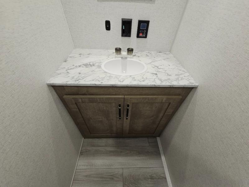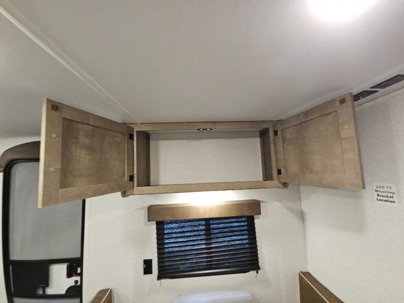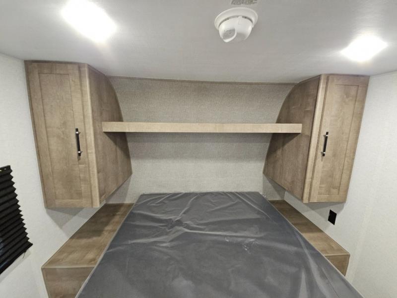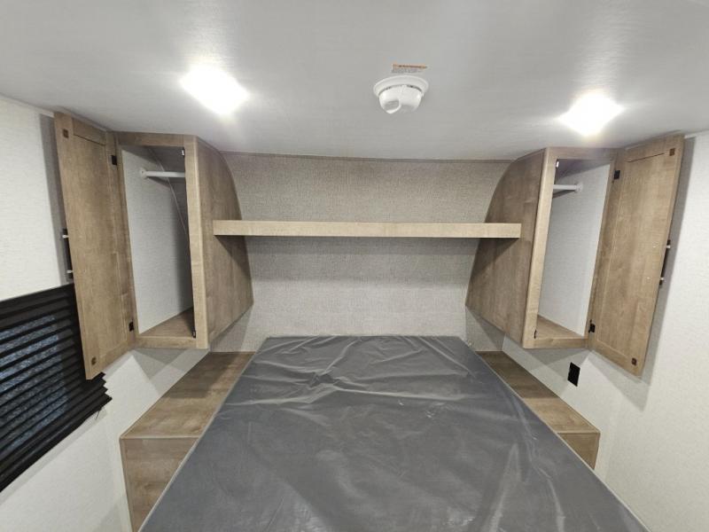 This cozy trailer for two or four will have you out enjoying nature easily. There is a queen bed for you, and the booth dinette can easily transform into a bed for one or two more campers if needed at night. The rear private bath features a shower and vanity with sink, plus toilet so no late night trips to the campground bathroom. There is ample storage in overhead cabinets on both sides of the trailer, as well as dual closets and nightstands on either side of the bed. A 10' awning offers even more living space outside. Grab a couple of camp chairs and enjoy hanging out with your campground neighbors or enjoying a campfire.