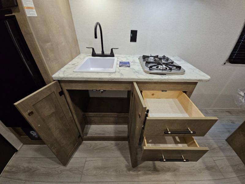 With any Springdale Classic Mini travel trailer by Keystone, you will enjoy lightweight towing thanks to their single-axle! You'll find the XL entry assist handle will make entering and exiting your unit easier than ever, and the power awning will provide protection from the sun as you relax in your camp chairs outside. Each model includes blackout night shades, solid wood cabinet doors and drawers, a shower skylight for more standing room, plus many more interior comforts. There is also a 5,000 BTU sidewall A/C and 20K BTU furnace to keep you comfortable, plus a Girard tankless water heater for endless hot showers!