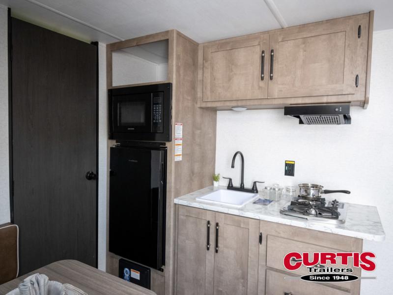 With any Springdale Classic Mini travel trailer by Keystone, you will enjoy lightweight towing thanks to their single-axle! You'll find the XL entry assist handle will make entering and exiting your unit easier than ever, and the power awning will provide protection from the sun as you relax in your camp chairs outside. Each model includes blackout night shades, solid wood cabinet doors and drawers, a shower skylight for more standing room, plus many more interior comforts. There is also a 5,000 BTU sidewall A/C and 20K BTU furnace to keep you comfortable, plus a Girard tankless water heater for endless hot showers!
