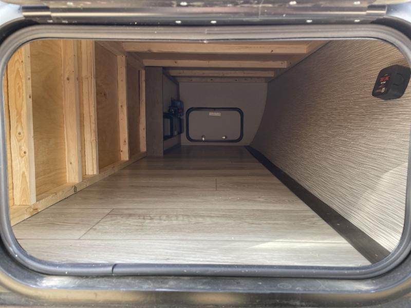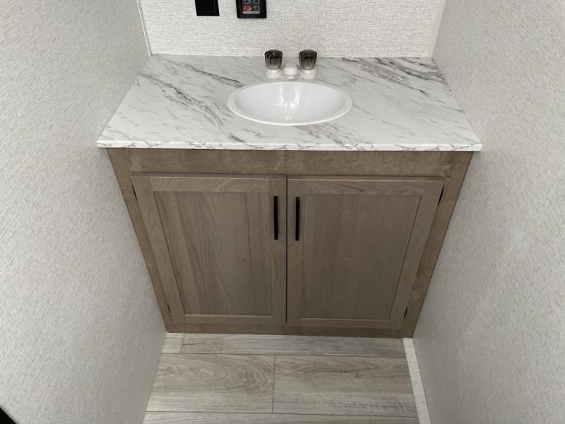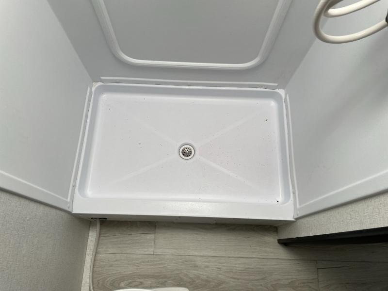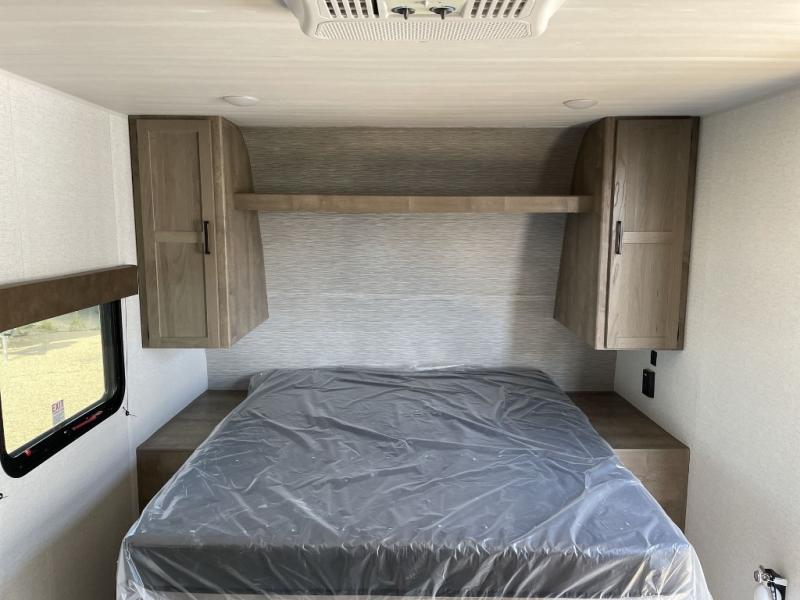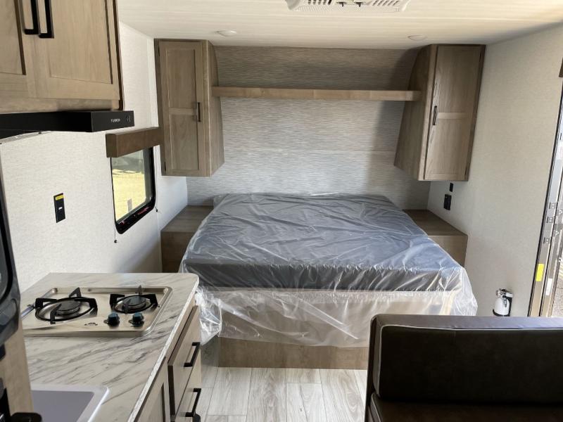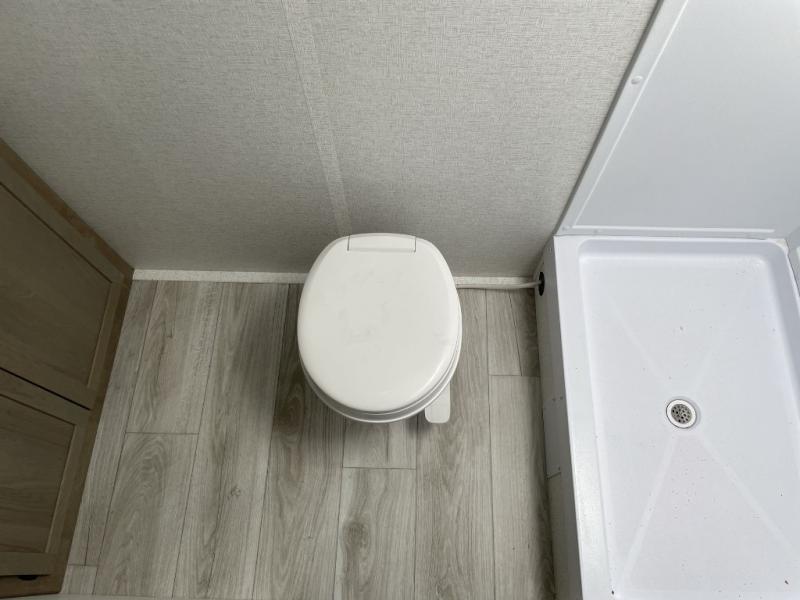 This cozy trailer for two or four will have you out enjoying nature easily. There is a queen bed for you, and the booth dinette can easily transform into a bed for one or two more campers if needed at night. The rear private bath features a shower and vanity with sink, plus toilet so no late night trips to the campground bathroom. There is ample storage in overhead cabinets on both sides of the trailer, as well as dual closets and nightstands on either side of the bed. A 10' awning offers even more living space outside. Grab a couple of camp chairs and enjoy hanging out with your campground neighbors or enjoying a campfire.