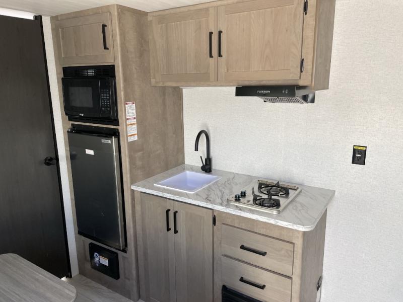 With any Springdale Classic Mini travel trailer by Keystone, you will enjoy lightweight towing thanks to their single-axle! You'll find the XL entry assist handle will make entering and exiting your unit easier than ever, and the power awning will provide protection from the sun as you relax in your camp chairs outside. Each model includes blackout night shades, solid wood cabinet doors and drawers, a shower skylight for more standing room, plus many more interior comforts. There is also a 5,000 BTU sidewall A/C and 20K BTU furnace to keep you comfortable, plus a Girard tankless water heater for endless hot showers!