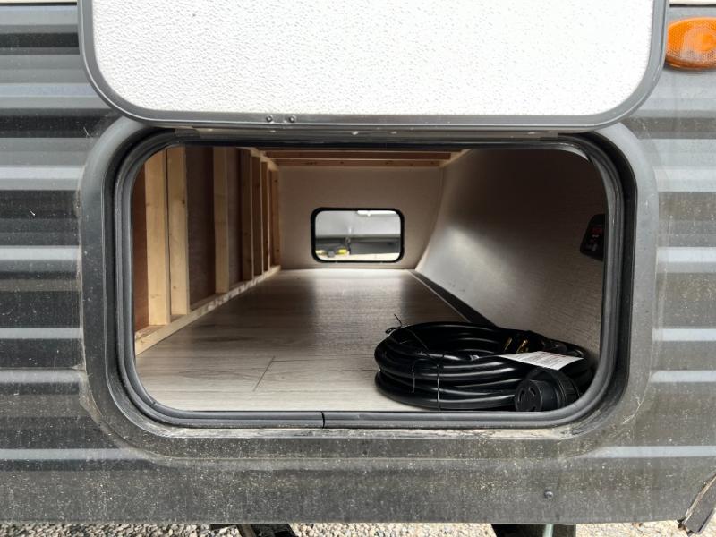 This cozy trailer for two or four will have you out enjoying nature easily. There is a queen bed for you, and the booth dinette can easily transform into a bed for one or two more campers if needed at night. The rear private bath features a shower and vanity with sink, plus toilet so no late night trips to the campground bathroom. There is ample storage in overhead cabinets on both sides of the trailer, as well as dual closets and nightstands on either side of the bed. A 10' awning offers even more living space outside. Grab a couple of camp chairs and enjoy hanging out with your campground neighbors or enjoying a campfire.