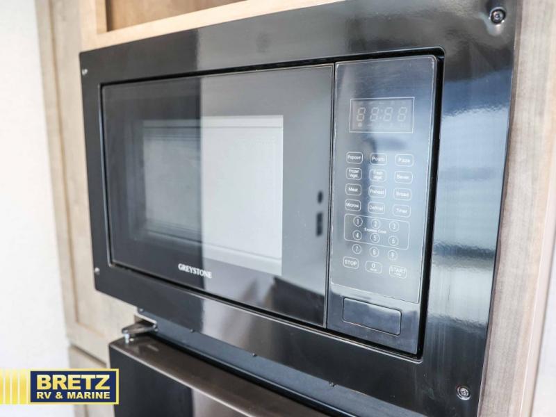 Time spent in this couple's trailer will be time well spent! You will love the amount of space you have each day since the queen Murphy bed can be put away to utilize the fold-down sofa. The chef of your group can make breakfast on the two burner gas cooktop and store leftovers in the 3.3 cu. ft. 12V refrigerator. The countertop with two chairs can be used as a desk or for dining space, and the full rear bath is sure to be appreciated!