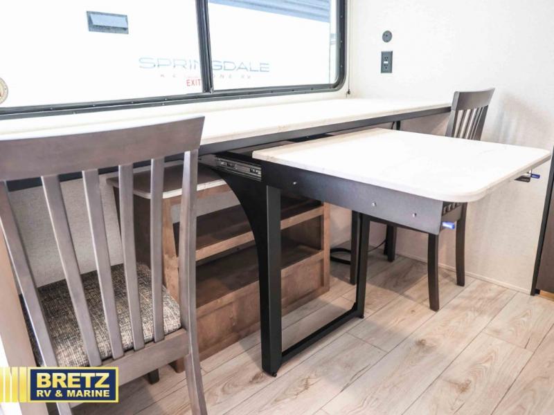 With any Springdale Classic Mini travel trailer by Keystone, you will enjoy lightweight towing thanks to their single-axle! You'll find the XL entry assist handle will make entering and exiting your unit easier than ever, and the power awning will provide protection from the sun as you relax in your camp chairs outside. Each model includes blackout night shades, solid wood cabinet doors and drawers, a shower skylight for more standing room, plus many more interior comforts. There is also a 5,000 BTU sidewall A/C and 20K BTU furnace to keep you comfortable, plus a Girard tankless water heater for endless hot showers!