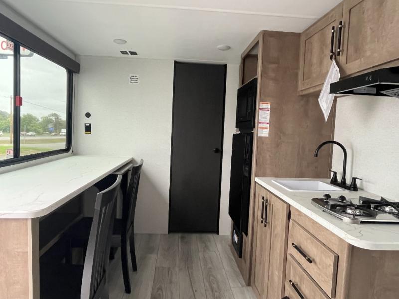 With any Springdale Classic Mini travel trailer by Keystone, you will enjoy lightweight towing thanks to their single-axle! You'll find the XL entry assist handle will make entering and exiting your unit easier than ever, and the power awning will provide protection from the sun as you relax in your camp chairs outside. Each model includes blackout night shades, solid wood cabinet doors and drawers, a shower skylight for more standing room, plus many more interior comforts. There is also a 5,000 BTU sidewall A/C and 20K BTU furnace to keep you comfortable, plus a Girard tankless water heater for endless hot showers!