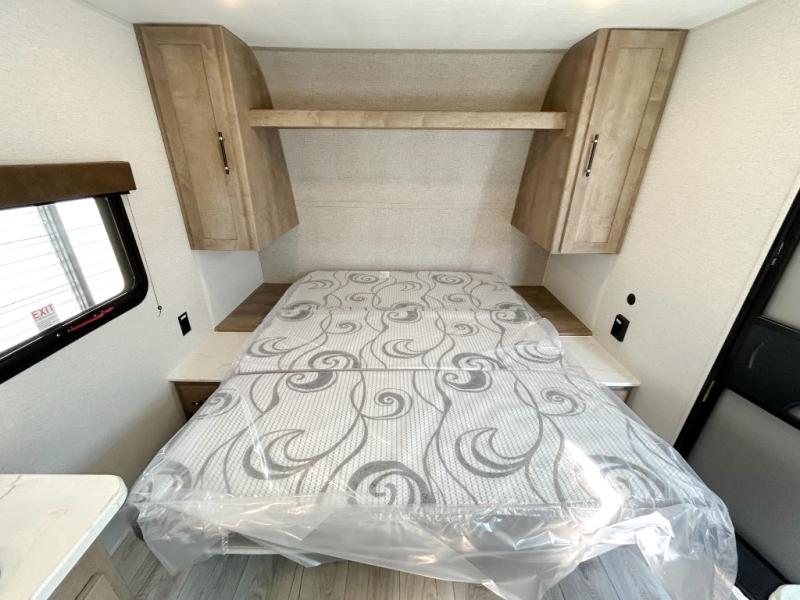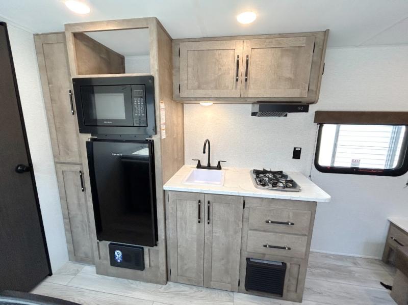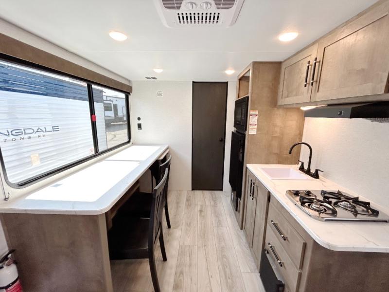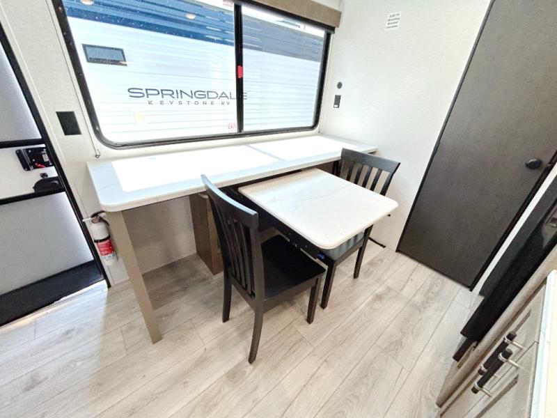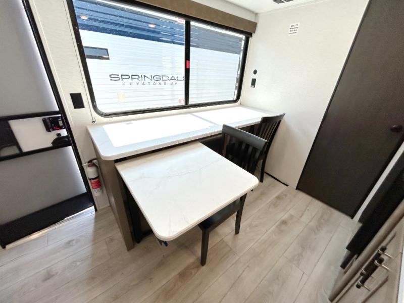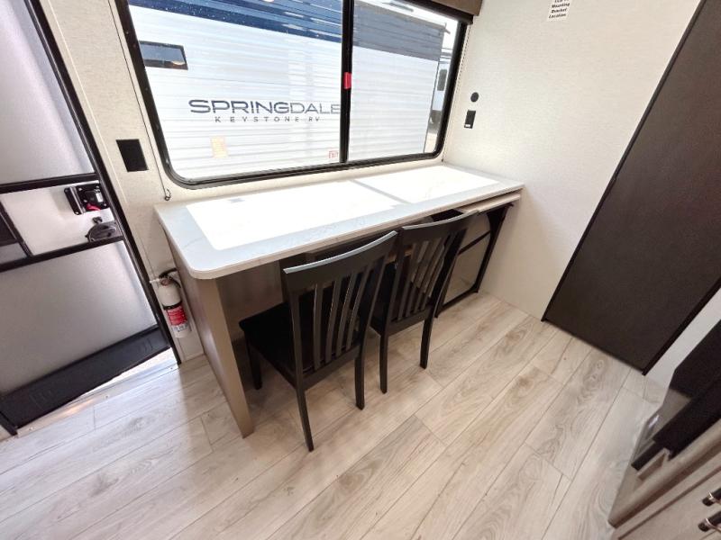 With any Springdale Classic Mini travel trailer by Keystone, you will enjoy lightweight towing thanks to their single-axle! You'll find the XL entry assist handle will make entering and exiting your unit easier than ever, and the power awning will provide protection from the sun as you relax in your camp chairs outside. Each model includes blackout night shades, solid wood cabinet doors and drawers, a shower skylight for more standing room, plus many more interior comforts. There is also a 5,000 BTU sidewall A/C and 20K BTU furnace to keep you comfortable, plus a Girard tankless water heater for endless hot showers!