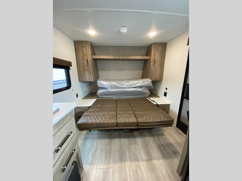 With any Springdale Classic Mini travel trailer by Keystone, you will enjoy lightweight towing thanks to their single-axle! You'll find the XL entry assist handle will make entering and exiting your unit easier than ever, and the power awning will provide protection from the sun as you relax in your camp chairs outside. Each model includes blackout night shades, solid wood cabinet doors and drawers, a shower skylight for more standing room, plus many more interior comforts. There is also a 5,000 BTU sidewall A/C and 20K BTU furnace to keep you comfortable, plus a Girard tankless water heater for endless hot showers!
