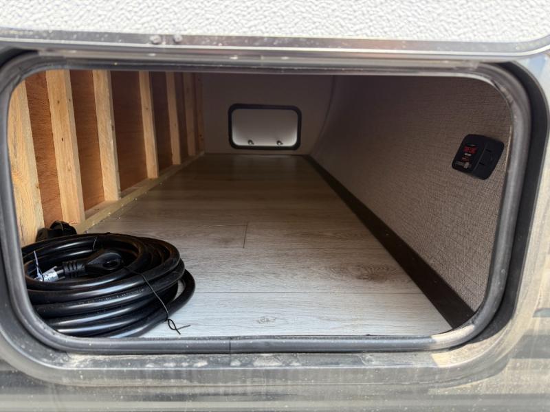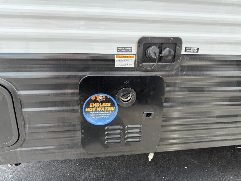 You will find lots of storage inside and outside this trailer allowing you to bring along everything you need for a great camping trip! Along the exterior there is a pass-thru compartment for your outdoor gear and a 10' power awning giving you a covered outdoor living area to enjoy. The cook will have a two burner gas range to make meals, and everyone can dine around the U-shaped dinette. There is a full bathroom to get cleaned up in before bedtime, and a queen bed to fall asleep quickly so you can have fun again tomorrow.