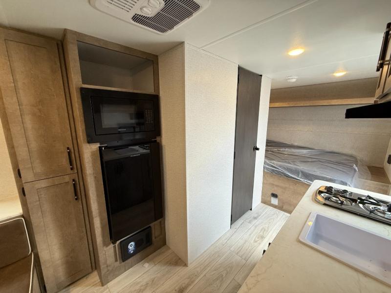 With any Springdale Classic Mini travel trailer by Keystone, you will enjoy lightweight towing thanks to their single-axle! You'll find the XL entry assist handle will make entering and exiting your unit easier than ever, and the power awning will provide protection from the sun as you relax in your camp chairs outside. Each model includes blackout night shades, solid wood cabinet doors and drawers, a shower skylight for more standing room, plus many more interior comforts. There is also a 5,000 BTU sidewall A/C and 20K BTU furnace to keep you comfortable, plus a Girard tankless water heater for endless hot showers!