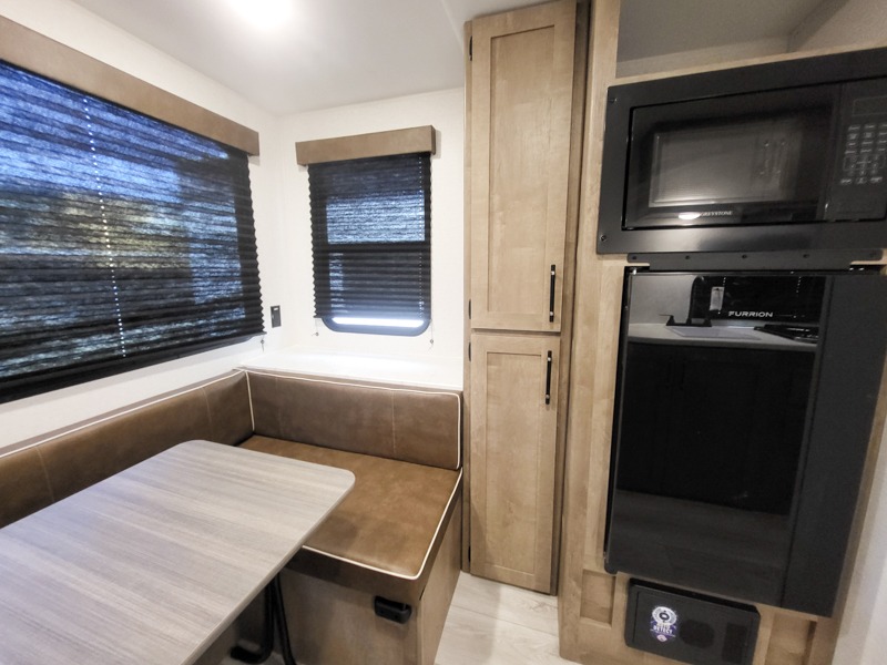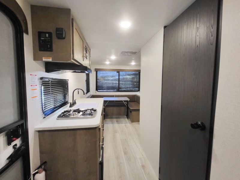 With any Springdale Classic Mini travel trailer by Keystone, you will enjoy lightweight towing thanks to their single-axle! You'll find the XL entry assist handle will make entering and exiting your unit easier than ever, and the power awning will provide protection from the sun as you relax in your camp chairs outside. Each model includes blackout night shades, solid wood cabinet doors and drawers, a shower skylight for more standing room, plus many more interior comforts. There is also a 5,000 BTU sidewall A/C and 20K BTU furnace to keep you comfortable, plus a Girard tankless water heater for endless hot showers!