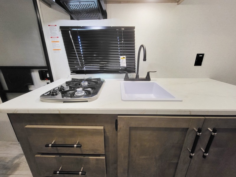 You will find lots of storage inside and outside this trailer allowing you to bring along everything you need for a great camping trip! Along the exterior there is a pass-thru compartment for your outdoor gear and a 10' power awning giving you a covered outdoor living area to enjoy. The cook will have a two burner gas range to make meals, and everyone can dine around the U-shaped dinette. There is a full bathroom to get cleaned up in before bedtime, and a queen bed to fall asleep quickly so you can have fun again tomorrow.