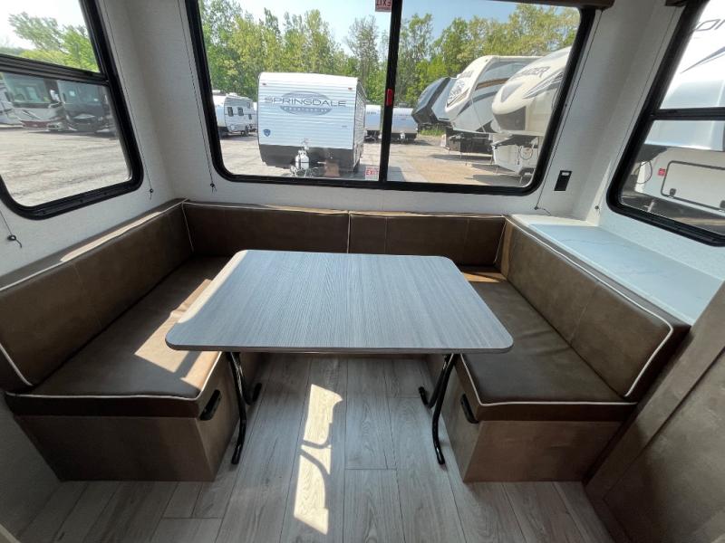 With any Springdale Classic Mini travel trailer by Keystone, you will enjoy lightweight towing thanks to their single-axle! You'll find the XL entry assist handle will make entering and exiting your unit easier than ever, and the power awning will provide protection from the sun as you relax in your camp chairs outside. Each model includes blackout night shades, solid wood cabinet doors and drawers, a shower skylight for more standing room, plus many more interior comforts. There is also a 5,000 BTU sidewall A/C and 20K BTU furnace to keep you comfortable, plus a Girard tankless water heater for endless hot showers!