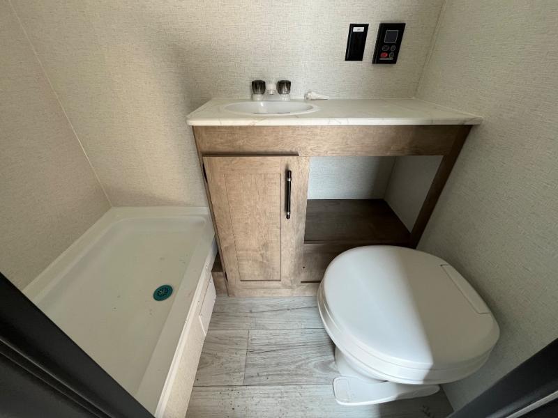 You will find lots of storage inside and outside this trailer allowing you to bring along everything you need for a great camping trip! Along the exterior there is a pass-thru compartment for your outdoor gear and a 10' power awning giving you a covered outdoor living area to enjoy. The cook will have a two burner gas range to make meals, and everyone can dine around the U-shaped dinette. There is a full bathroom to get cleaned up in before bedtime, and a queen bed to fall asleep quickly so you can have fun again tomorrow.