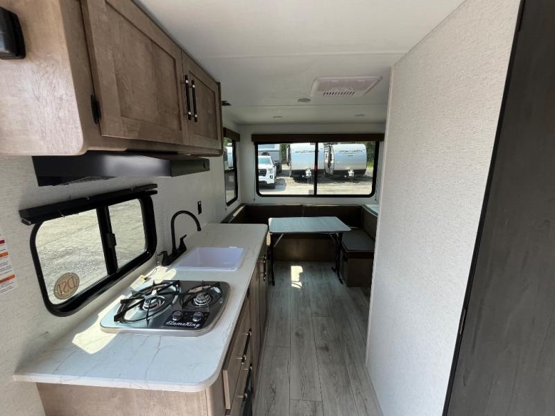 With any Springdale Classic Mini travel trailer by Keystone, you will enjoy lightweight towing thanks to their single-axle! You'll find the XL entry assist handle will make entering and exiting your unit easier than ever, and the power awning will provide protection from the sun as you relax in your camp chairs outside. Each model includes blackout night shades, solid wood cabinet doors and drawers, a shower skylight for more standing room, plus many more interior comforts. There is also a 5,000 BTU sidewall A/C and 20K BTU furnace to keep you comfortable, plus a Girard tankless water heater for endless hot showers!