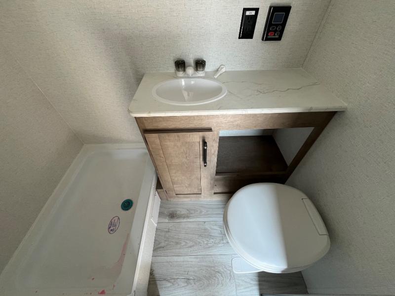 You will find lots of storage inside and outside this trailer allowing you to bring along everything you need for a great camping trip! Along the exterior there is a pass-thru compartment for your outdoor gear and a 10' power awning giving you a covered outdoor living area to enjoy. The cook will have a two burner gas range to make meals, and everyone can dine around the U-shaped dinette. There is a full bathroom to get cleaned up in before bedtime, and a queen bed to fall asleep quickly so you can have fun again tomorrow.