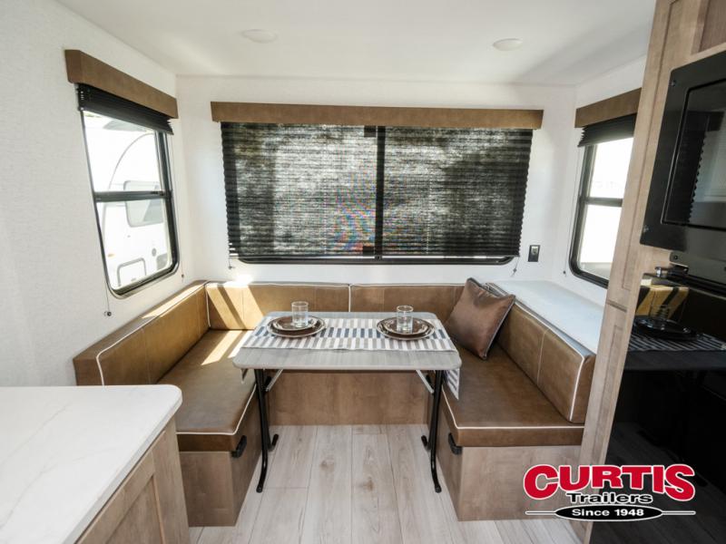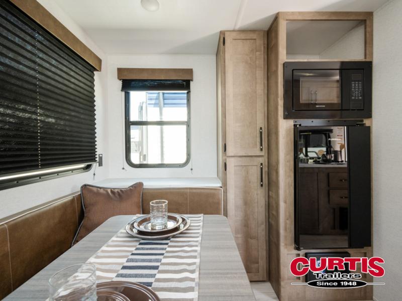 You will find lots of storage inside and outside this trailer allowing you to bring along everything you need for a great camping trip! Along the exterior there is a pass-thru compartment for your outdoor gear and a 10' power awning giving you a covered outdoor living area to enjoy. The cook will have a two burner gas range to make meals, and everyone can dine around the U-shaped dinette. There is a full bathroom to get cleaned up in before bedtime, and a queen bed to fall asleep quickly so you can have fun again tomorrow.