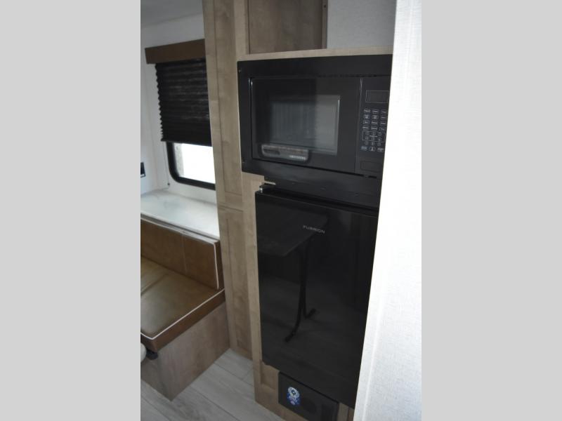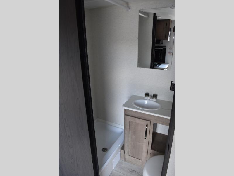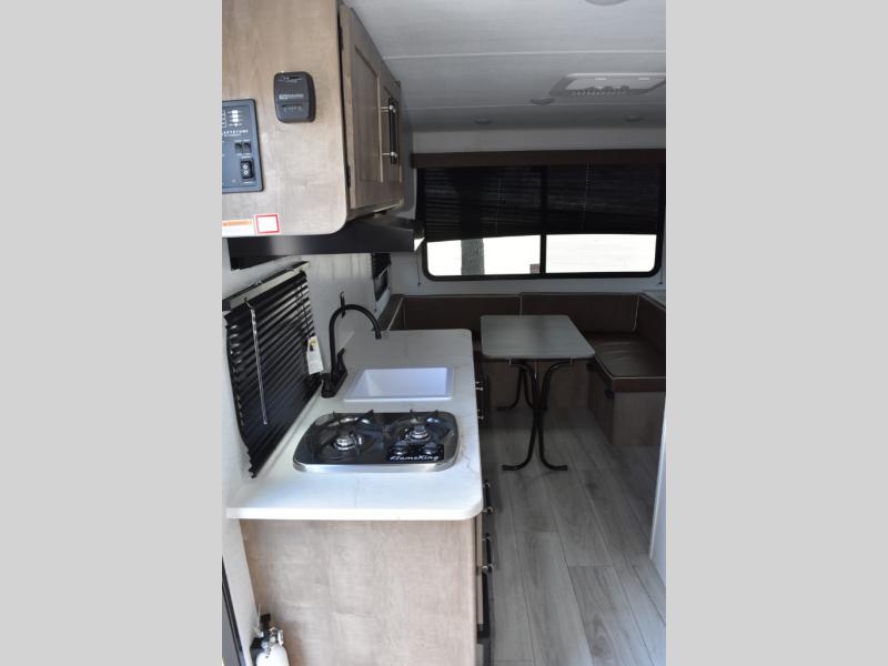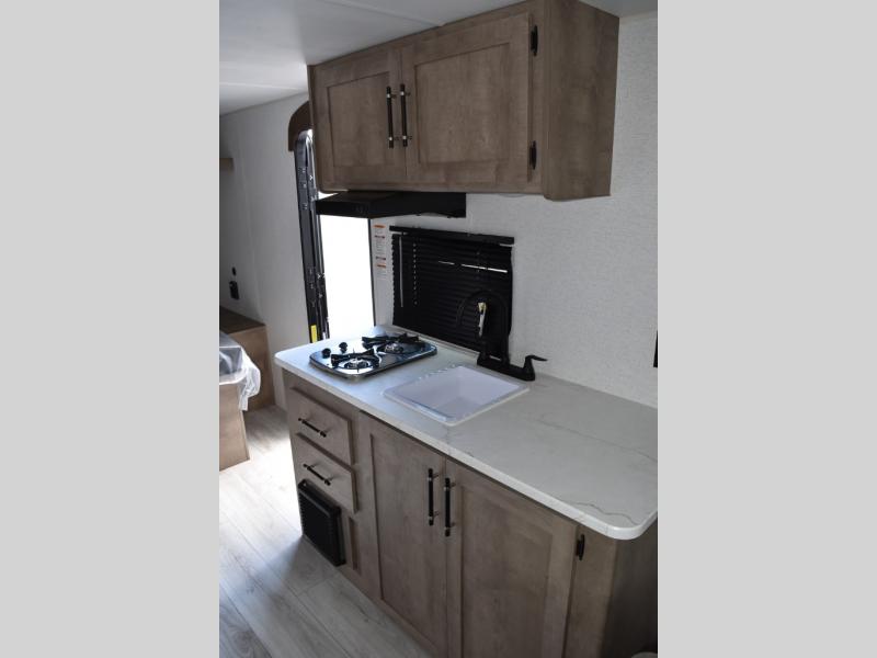With any Springdale Classic Mini travel trailer by Keystone, you will enjoy lightweight towing thanks to their single-axle! You'll find the XL entry assist handle will make entering and exiting your unit easier than ever, and the power awning will provide protection from the sun as you relax in your camp chairs outside. Each model includes blackout night shades, solid wood cabinet doors and drawers, a shower skylight for more standing room, plus many more interior comforts. There is also a 5,000 BTU sidewall A/C and 20K BTU furnace to keep you comfortable, plus a Girard tankless water heater for endless hot showers!