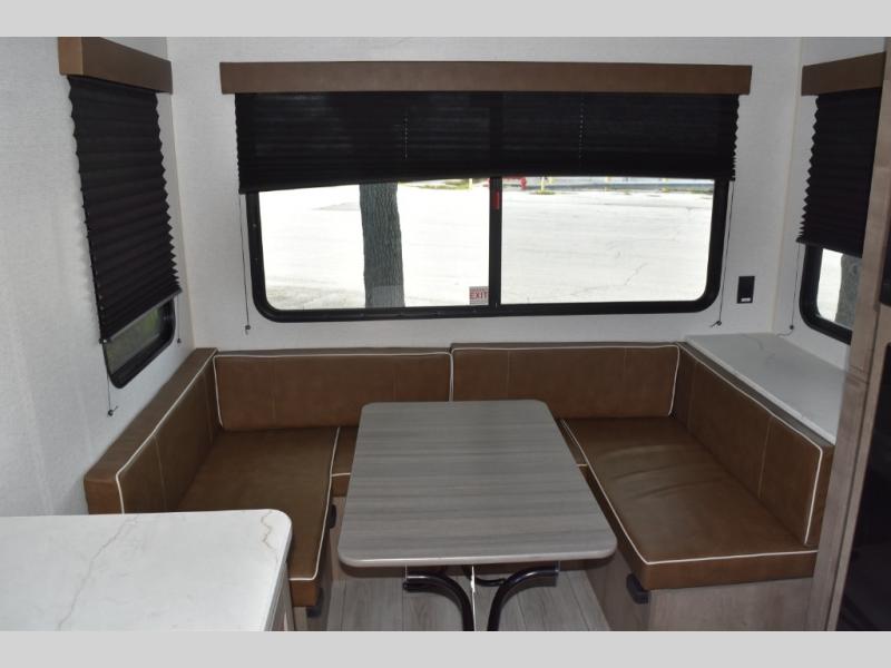 You will find lots of storage inside and outside this trailer allowing you to bring along everything you need for a great camping trip! Along the exterior there is a pass-thru compartment for your outdoor gear and a 10' power awning giving you a covered outdoor living area to enjoy. The cook will have a two burner gas range to make meals, and everyone can dine around the U-shaped dinette. There is a full bathroom to get cleaned up in before bedtime, and a queen bed to fall asleep quickly so you can have fun again tomorrow.