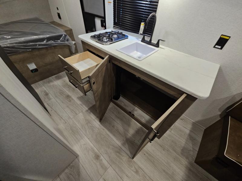 With any Springdale Classic Mini travel trailer by Keystone, you will enjoy lightweight towing thanks to their single-axle! You'll find the XL entry assist handle will make entering and exiting your unit easier than ever, and the power awning will provide protection from the sun as you relax in your camp chairs outside. Each model includes blackout night shades, solid wood cabinet doors and drawers, a shower skylight for more standing room, plus many more interior comforts. There is also a 5,000 BTU sidewall A/C and 20K BTU furnace to keep you comfortable, plus a Girard tankless water heater for endless hot showers!