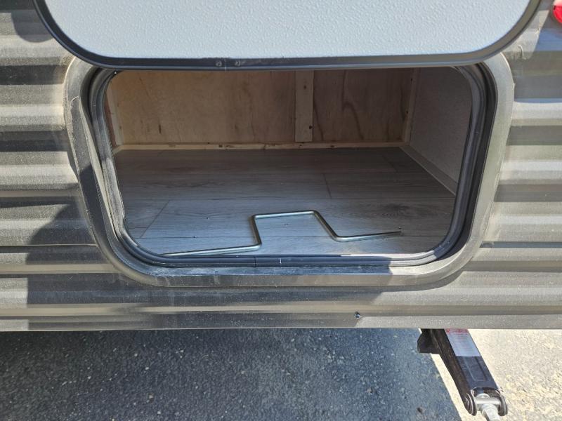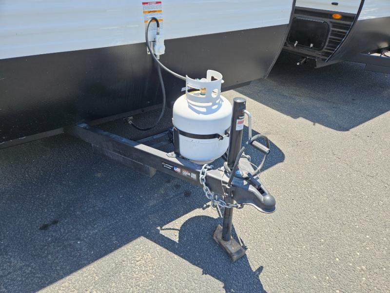 You will find lots of storage inside and outside this trailer allowing you to bring along everything you need for a great camping trip! Along the exterior there is a pass-thru compartment for your outdoor gear and a 10' power awning giving you a covered outdoor living area to enjoy. The cook will have a two burner gas range to make meals, and everyone can dine around the U-shaped dinette. There is a full bathroom to get cleaned up in before bedtime, and a queen bed to fall asleep quickly so you can have fun again tomorrow.