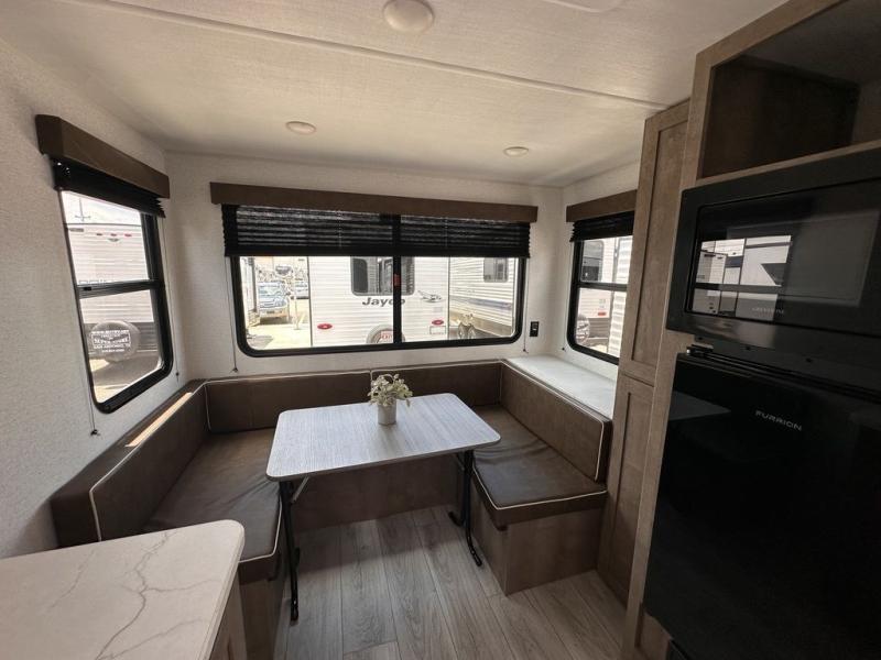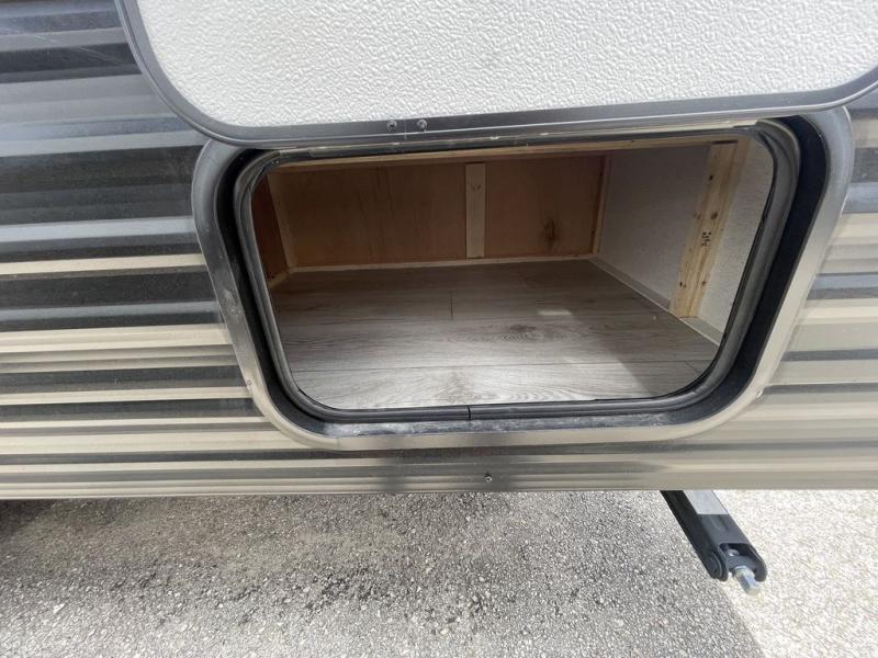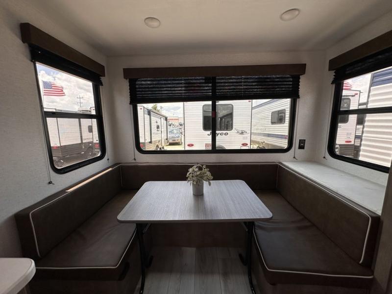 You will find lots of storage inside and outside this trailer allowing you to bring along everything you need for a great camping trip! Along the exterior there is a pass-thru compartment for your outdoor gear and a 10' power awning giving you a covered outdoor living area to enjoy. The cook will have a two burner gas range to make meals, and everyone can dine around the U-shaped dinette. There is a full bathroom to get cleaned up in before bedtime, and a queen bed to fall asleep quickly so you can have fun again tomorrow.