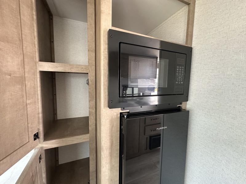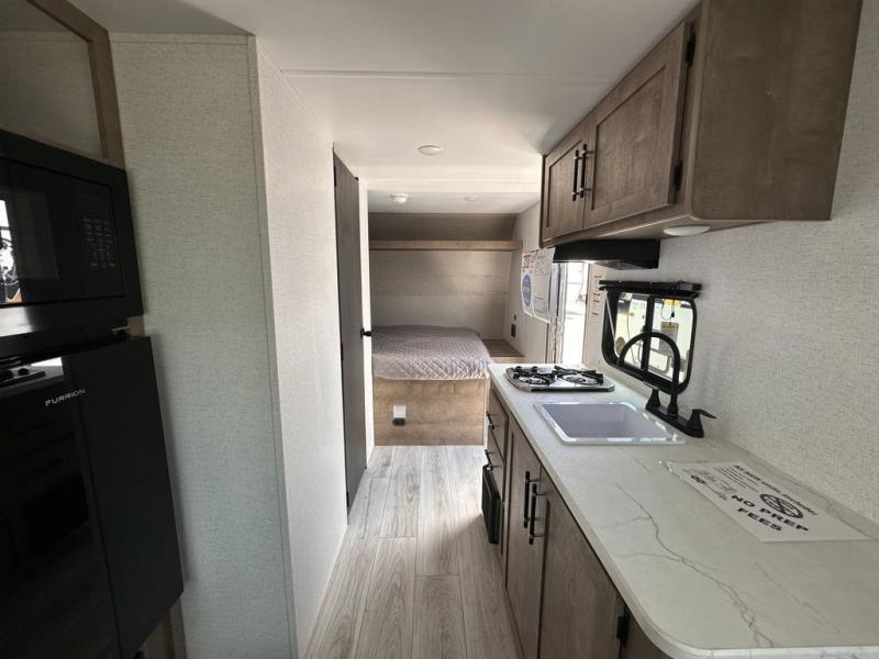 With any Springdale Classic Mini travel trailer by Keystone, you will enjoy lightweight towing thanks to their single-axle! You'll find the XL entry assist handle will make entering and exiting your unit easier than ever, and the power awning will provide protection from the sun as you relax in your camp chairs outside. Each model includes blackout night shades, solid wood cabinet doors and drawers, a shower skylight for more standing room, plus many more interior comforts. There is also a 5,000 BTU sidewall A/C and 20K BTU furnace to keep you comfortable, plus a Girard tankless water heater for endless hot showers!