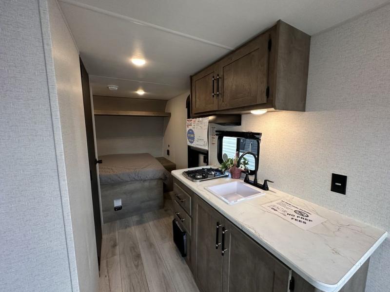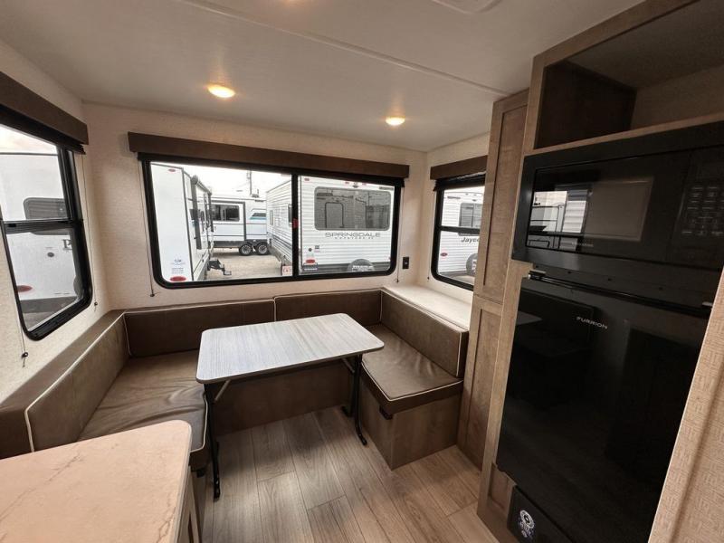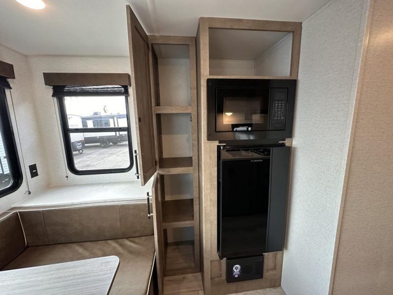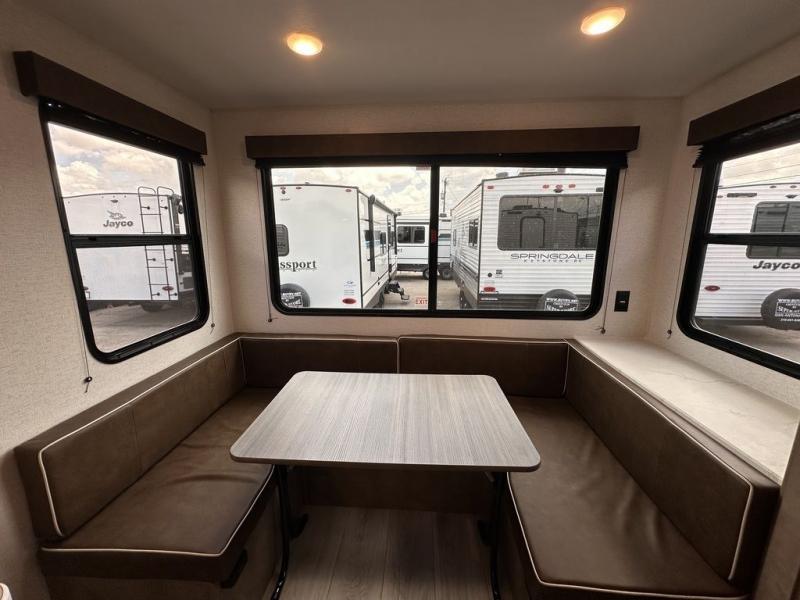 With any Springdale Classic Mini travel trailer by Keystone, you will enjoy lightweight towing thanks to their single-axle! You'll find the XL entry assist handle will make entering and exiting your unit easier than ever, and the power awning will provide protection from the sun as you relax in your camp chairs outside. Each model includes blackout night shades, solid wood cabinet doors and drawers, a shower skylight for more standing room, plus many more interior comforts. There is also a 5,000 BTU sidewall A/C and 20K BTU furnace to keep you comfortable, plus a Girard tankless water heater for endless hot showers!